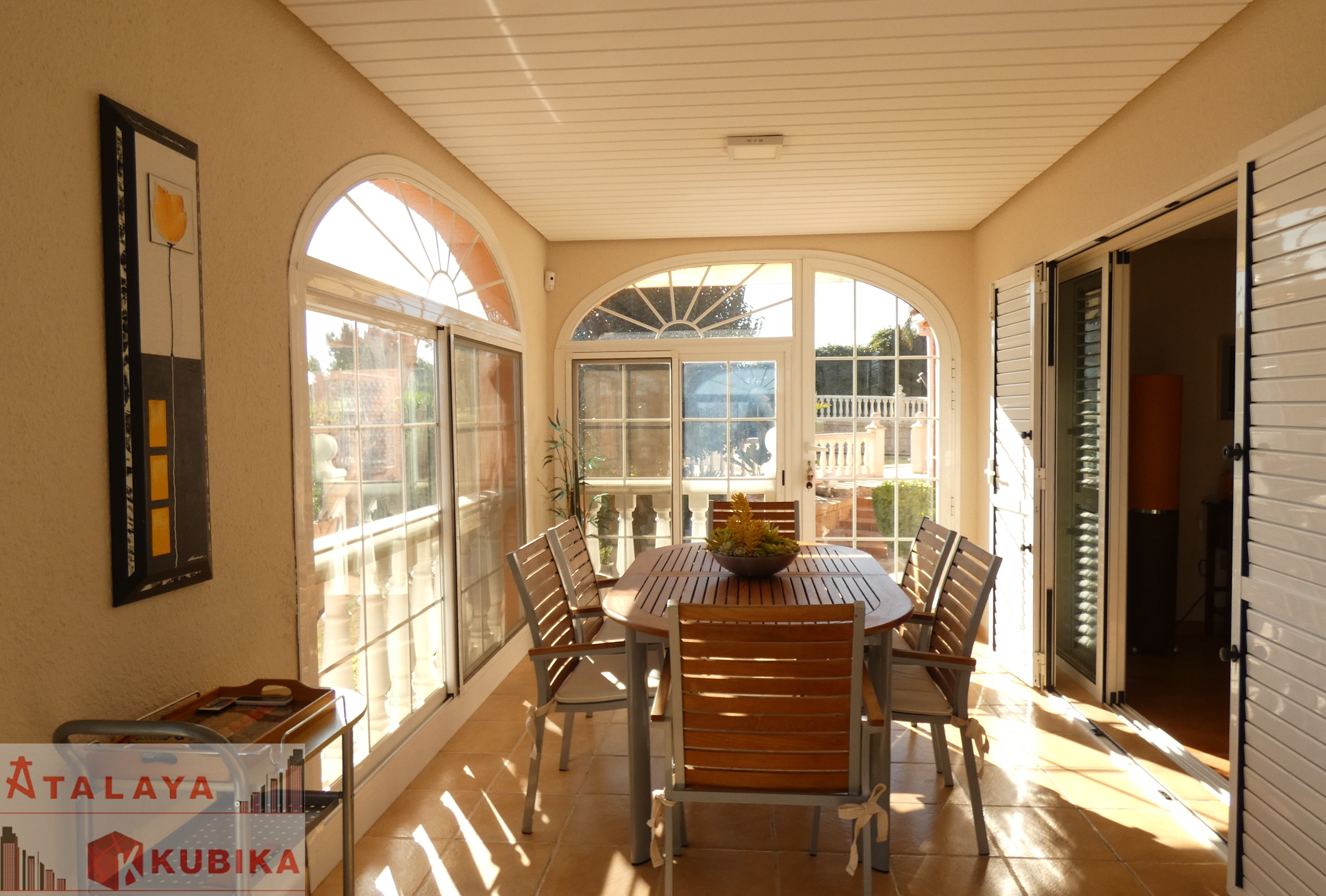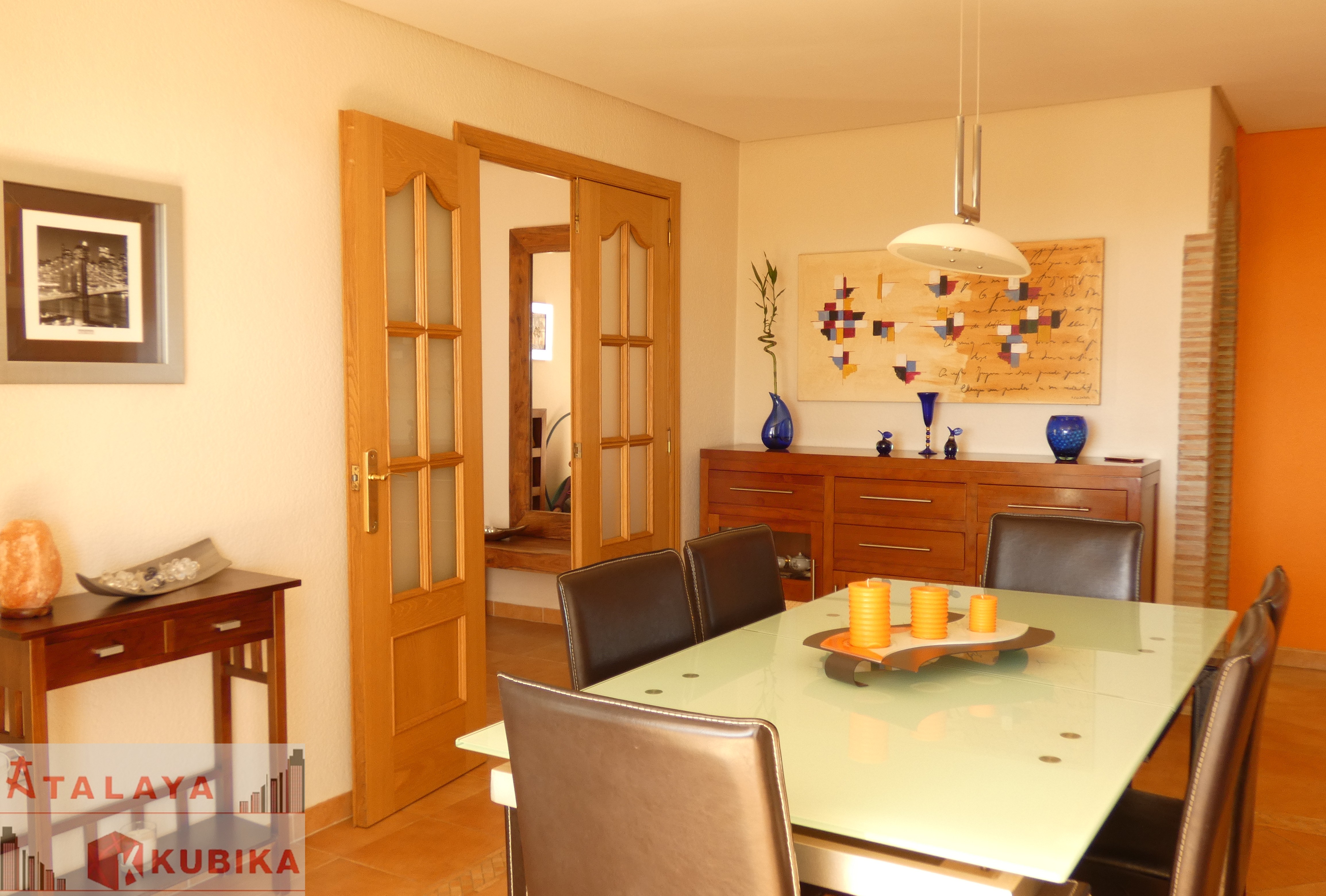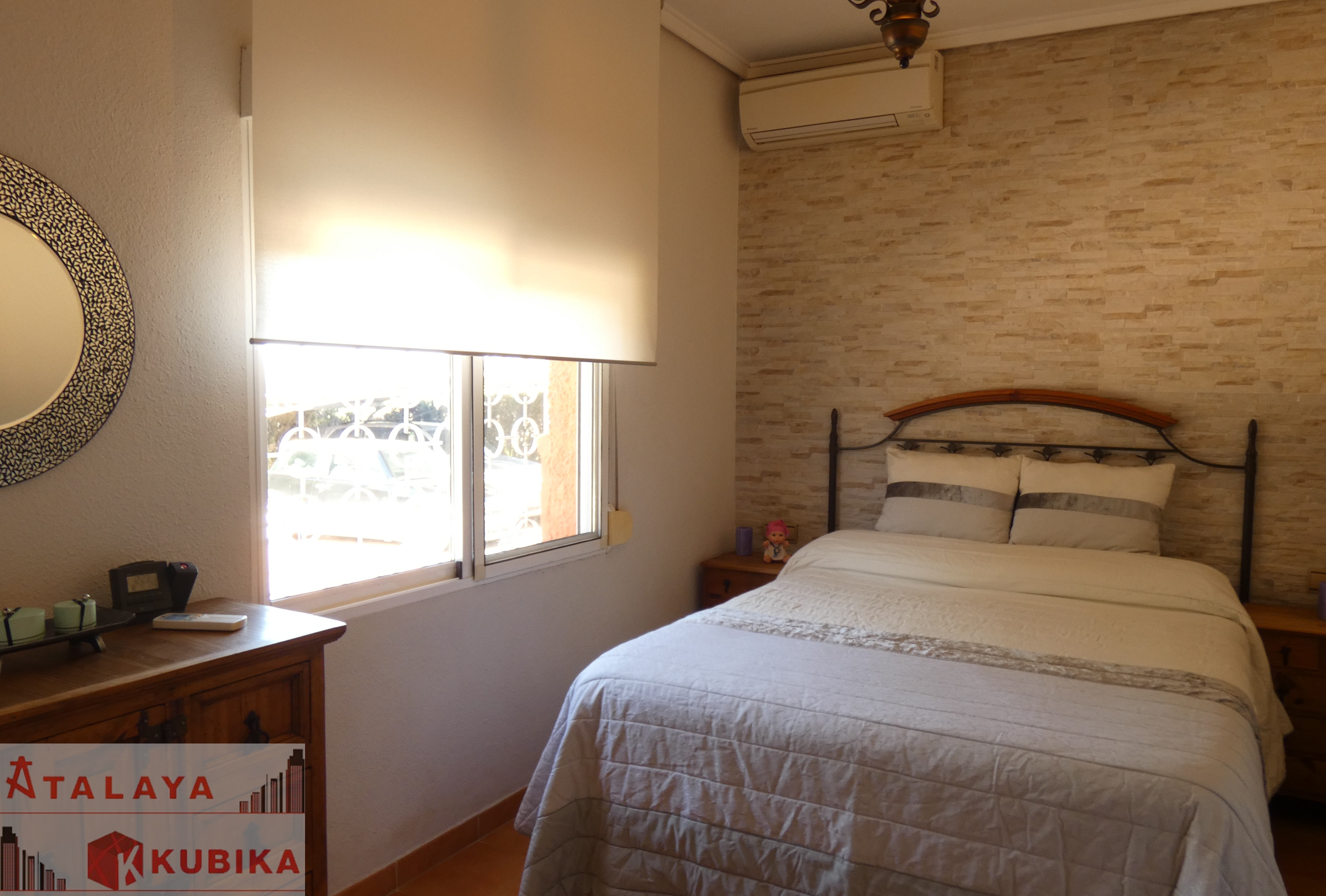 El chalet consta de dos viviendas independientes, una de aproximadamente 170 m2 en primera planta, y otra de unos 60 m2 en planta baja. Cada una posee entrada independiente, lo que la convierte en ideal para destinarla como inversión. La primera planta, cuidada hasta el último detalle y reformada con materiales de primera calidad, posee cuatro habitaciones (tres dobles y una individual). La principal, con baño en suite. Cuenta con otro cuarto de baño, cocina totalmente equipada con zona de lavadero, aire acondicionado en tres estancias, diversos radiadores de calor azul, chimenea y ventanas de doble cristal con mosquitera. Además dispone de una amplia terraza acristalada desde la que se observan unas impresionantes vistas. La planta baja, actualmente utilizada para alquiler vacacional, cuanta con un amplio salón comedor, cocina totalmente equipada con paellero interior, una habitación doble, un baño completo y un lavadero. Ambas viviendas se venden amuebladas y listas para entrar a vivir!